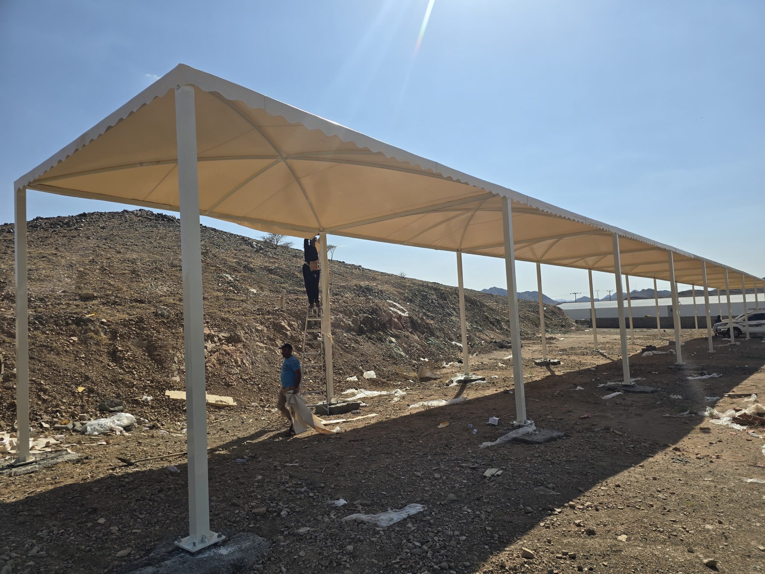 نمتلك خبرة واسعة في تنفيذ مختلف المشاريع، بدءًا من مظلات السيارات للمنازل والفلل، مرورًا بالسواتر الأمنية وسواتر الخصوصية، وصولًا إلى الشبوك الزراعية والأمنية، بالإضافة إلى تصميم وتنفيذ الهناجر والمستودعات بمواصفات هندسية دقيقة تلبي متطلبات المشاريع التجارية والصناعية.